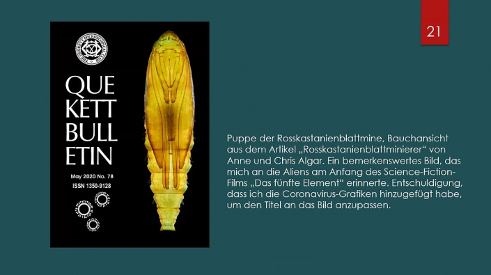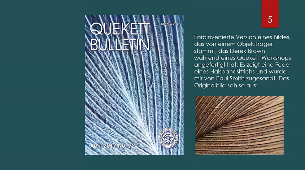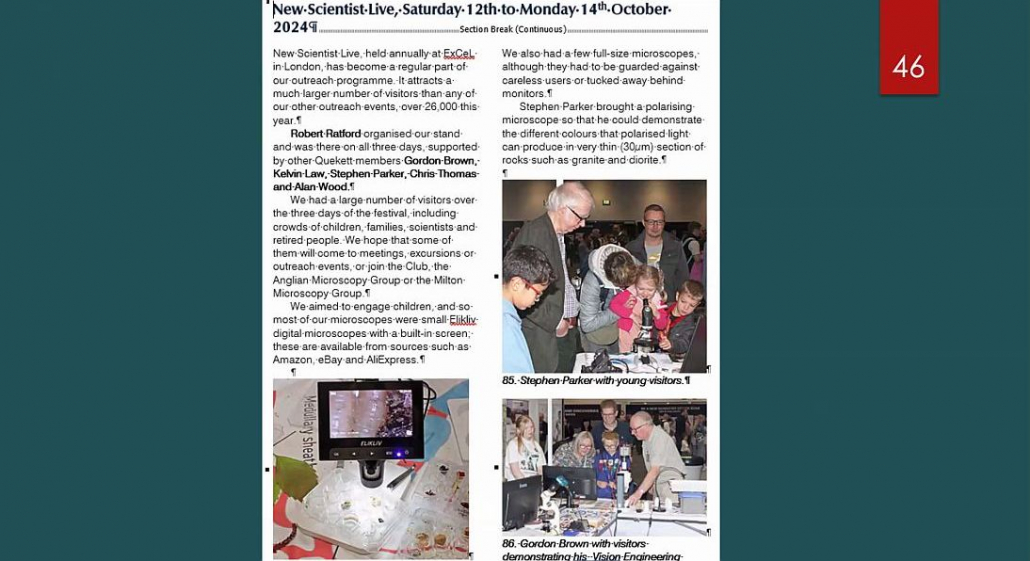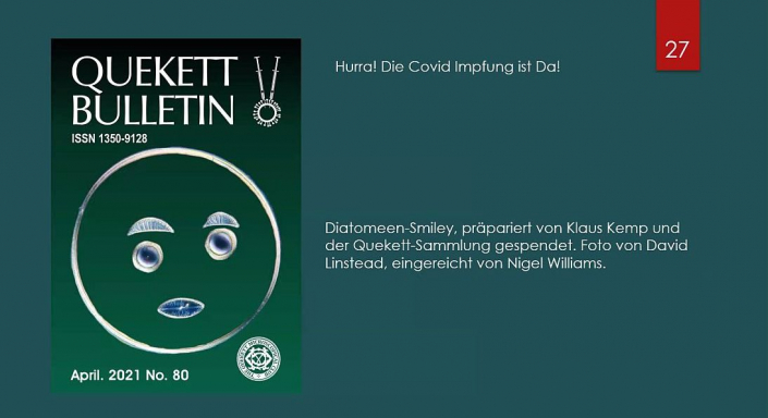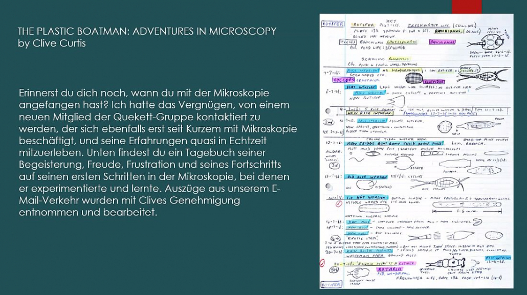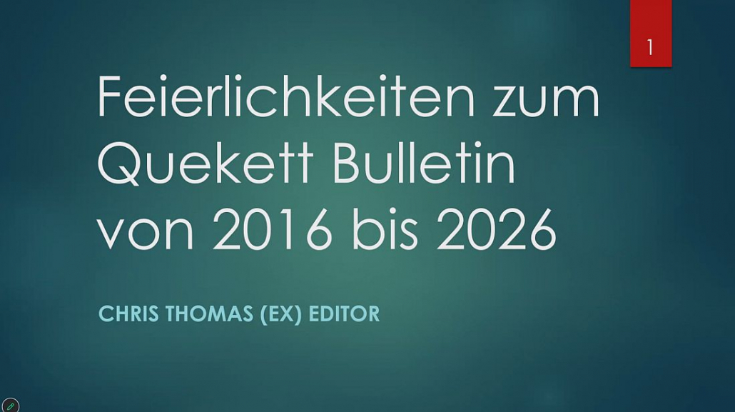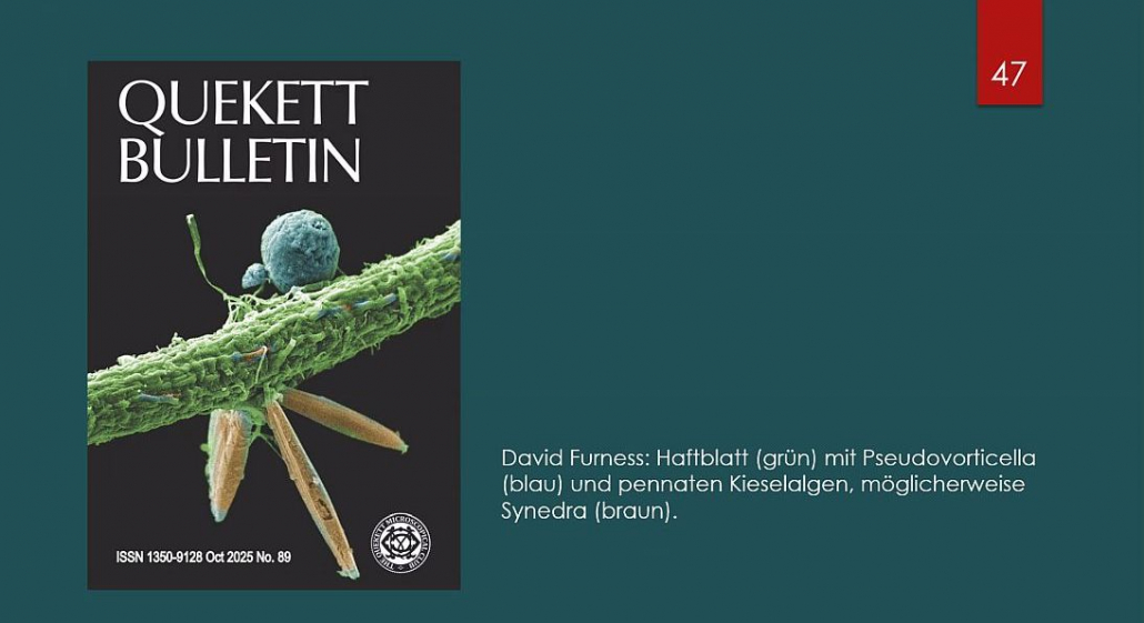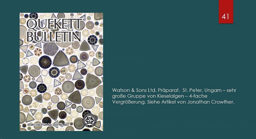 Dr. Chris Thomas berichtete beim Tübinger Mikroskopischen Stammtisch am 26. April 2026 über seine langjährige Tätigkeit als Herausgeber des Quekett-Bulletins, der Zeitschrift des gleichnamigen Englischen Vereins von Mikroskopiern.