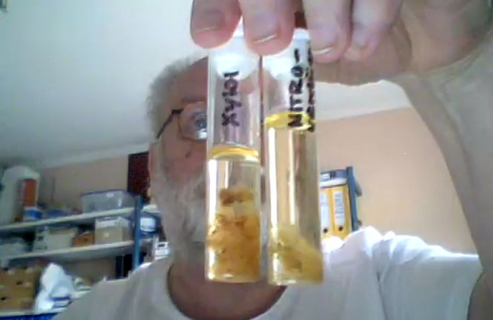 - Igor Reicher wurde inspiriert durch Ruud Herolds Beitrag zur Mikrochemie. Auch Igors Ergebnisse sind beeindruckend und einfach schön, siehe unter → Mikrochemie. Was man mit solch einem simplen (Entschuldigung: High-Tech-) Sublimations-„Ofen“ hinkriegt!