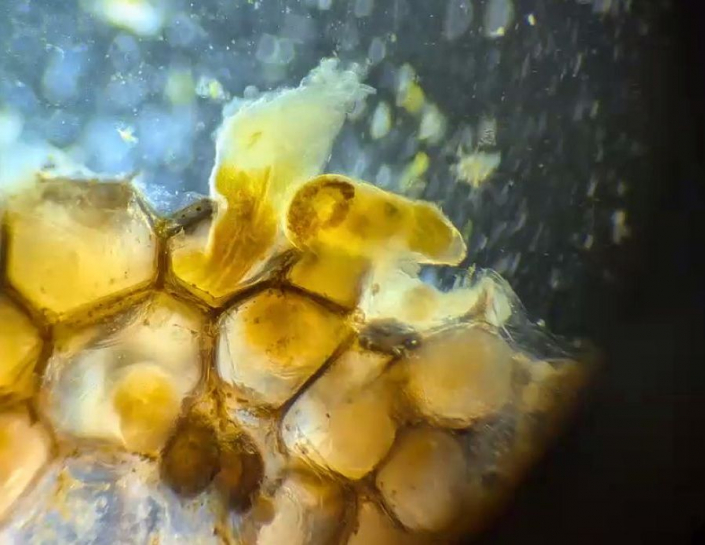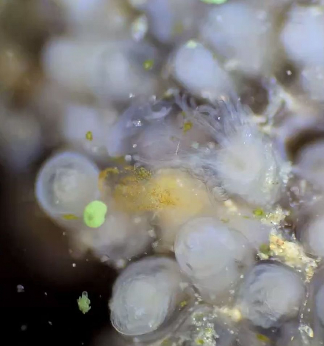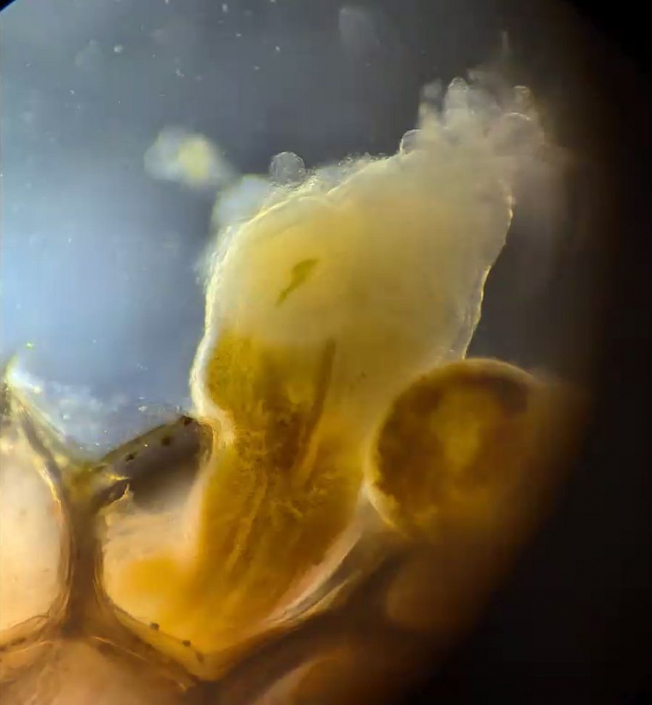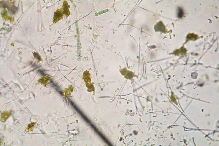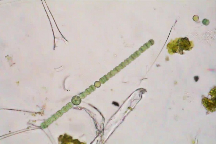 - Rückblick auf den gestrigen Plankton-Aktionstag am Baggersee Kirchentellinsfurt. Wir waren zu Acht. Überraschend wenig Badegäste am Baggersee und Besucher bei uns. Viel Aphanizomenon, vereinzelt Anabaena-ähnliche Cyanophyceen mit endständigen großen, hellen Akineten. Ludwig hatte jede Menge getrommelte Bernsteinstückchen aus dem Bitterfelder Braunkohleabbau mitgebracht. Das Durchforsten auf Inklusen geriet zur „Sucht“. Die Raupenhüpferlinge, vermutlich Canthocamptus, brachte Harald aus seinen Mikrotierchen-Zuchten mit.