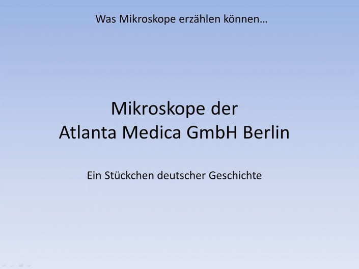 - Was Mikroskope erzählen können: Mikroskope der Atlanta Medica GmbH Berlin, über die Martin Bemmann ein Stück deutscher Geschichte hervor „zaubern“ konnte.
