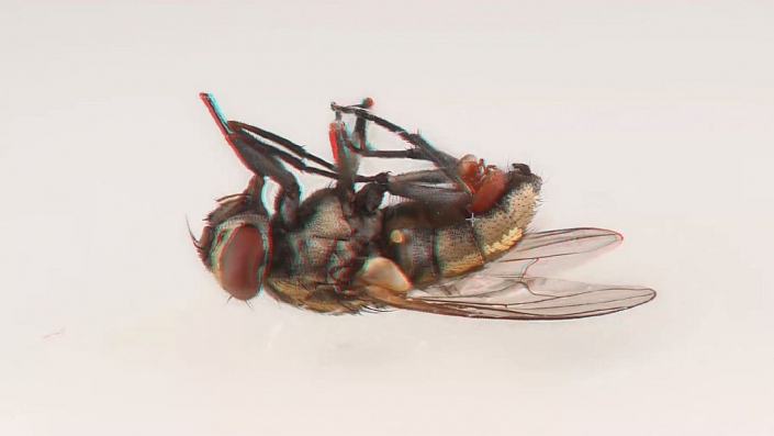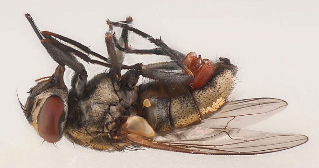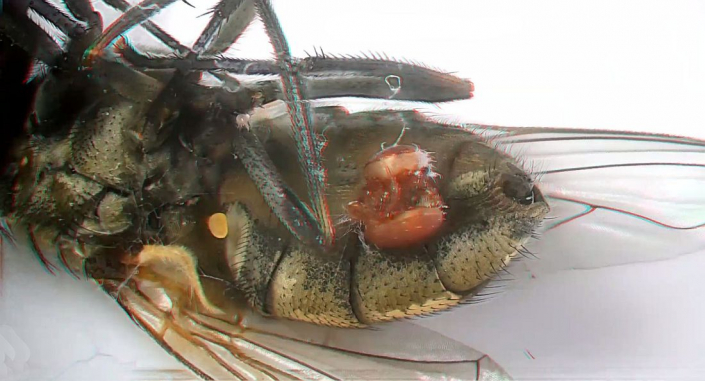 - Prof. Heribert Cypionka: „Von Füchsen, Menschen, Fliegen und der Kürbissuppe“ – eine „gewagte“ Geschichte, auch in 3D. Warum bleibt der Wadenstecher Stomoxys stundenlang an der Suppe sitzen und lässt sich vom Aufbau der Fotoapparatur nicht stören? Später wurde er in der Küche gesichtet und konnte dann genauer untersucht werden. Zwei Milben hatten die Fliege befallen. Oiver ist sich sicher, dass es sich dabei um Macrocheles muscaedomesticae handelt: Laut dem Artikel „Macrochelid Mite, Macrocheles muscaedomesticae (Acarina: Macrochelidae) as a Biological Control Agent Against House Fly, Musca domestica (Diptera: Muscidae) in Egypt“ in International Journal of Zoological Research 10(2):30-36 DOI:10.3923/ijzr.2014.30.36 können die adulten Milben auch an adulten Musciden saugen, nicht nur an Eiern und Larven.