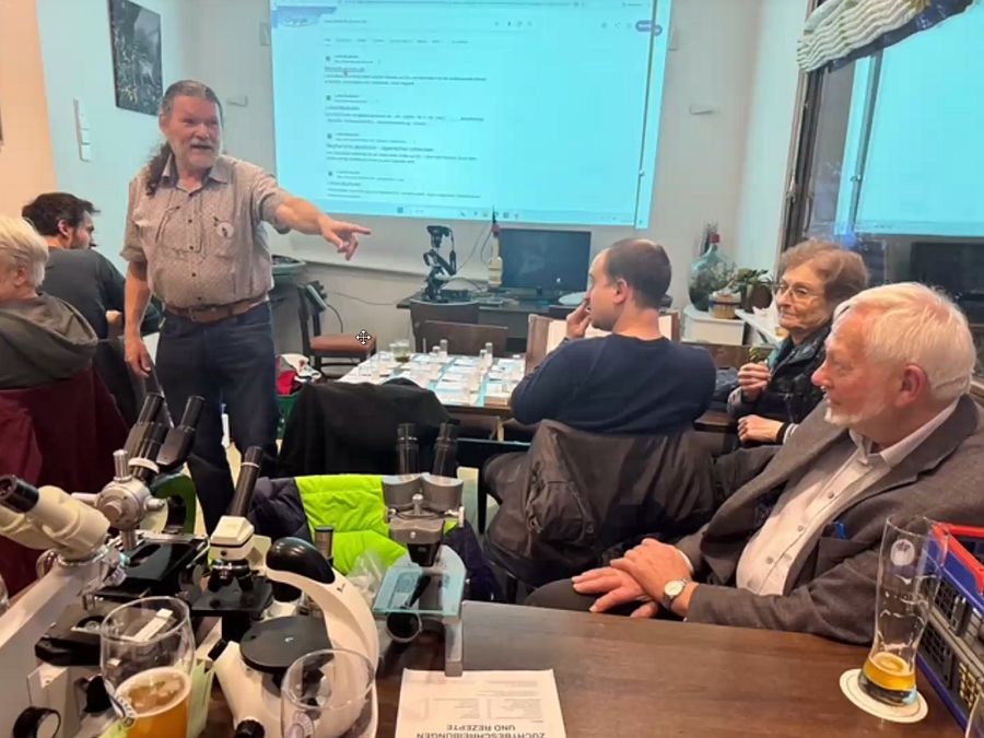 Beim wöchentlichen „Mikroskopier-Stammtisch“ sitzen wir virtuell per Internet-Meeting (ZOOM) zusammen, immer Sonntags ab 10 Uhr. Die Zugangsmodalitäten werden per E-Mail an die Mitglieder verschickt. Gäste sind willkommen, bitte →Kontakt aufnehmen.