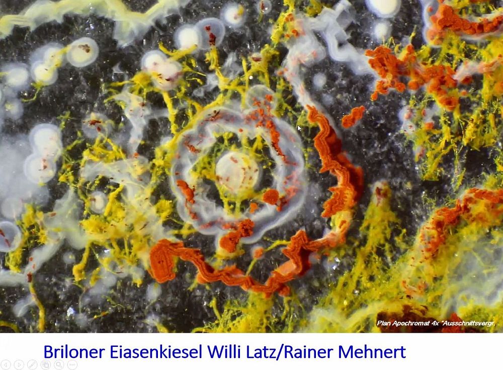 Wilfried Latz präsentierte uns beim Tübinger Mikroskopischen Stammtisch am 3. Januar 2021 wunderschöne Aufnahmen von Warsteiner und Briloner Eisenkiesel mit den entsprechenden Erklärungen von Entstehung, Zusammensetzung und Einschlüssen. Mit Fotos auch von Rainer Mehnert. Wir sind gespannt auf eine Fortsetzung!